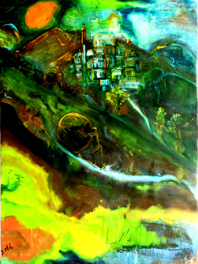 2024 2025 huile sur toile Sisyphe version 3Format 60F (130×97 cm) Sisyphe version 2Format 60F (130×97 cm) Sisyphe version 1Format 60F (130×97 cm)